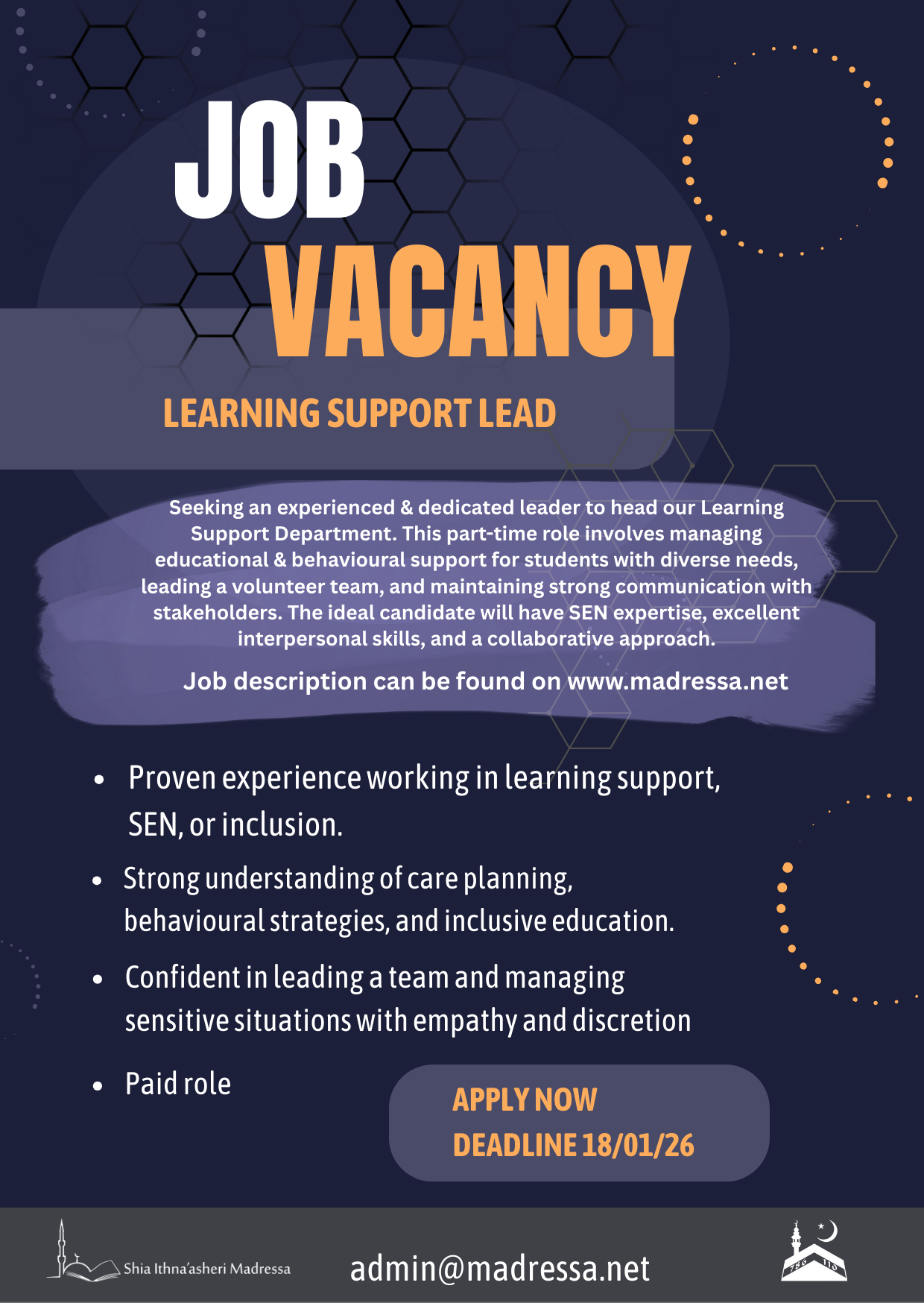 Mission: Enabling a learning environment that instils the values of Qur’an and the Ahlul Bayt a.s.